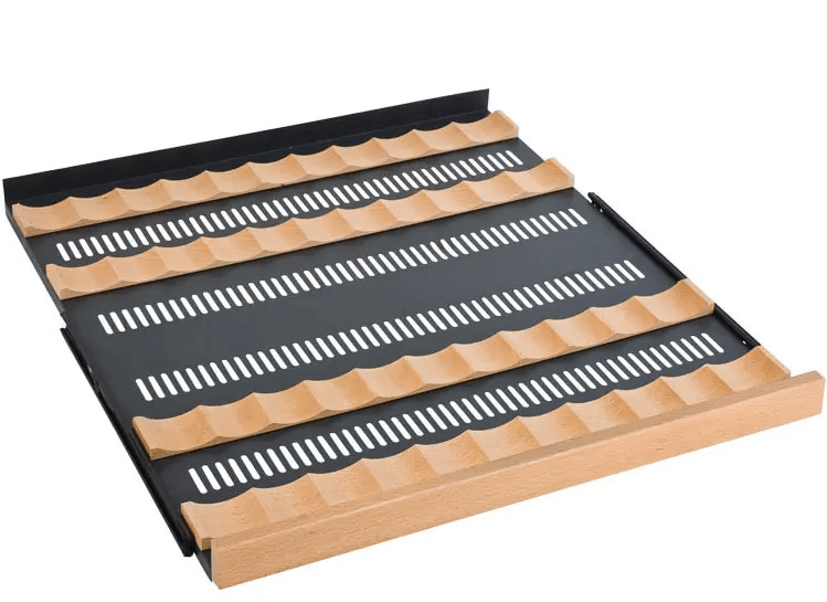 Allavino is at the leading edge of shelf design, incorporating revolutionary metal shelves that are strong enough to hold bottles without sagging, yet thin enough to maximize the available space in the cabinet for wine storage. Wood slats refine each shelf and gently cradle each bottle to prevent harmful vibration from affecting your wine. Each shelf is finished with a stylish stainless steel front to match the door frame. Each of the shelves glide out smoothly on ball bearing tracks, so every bottle is easily accessible.
