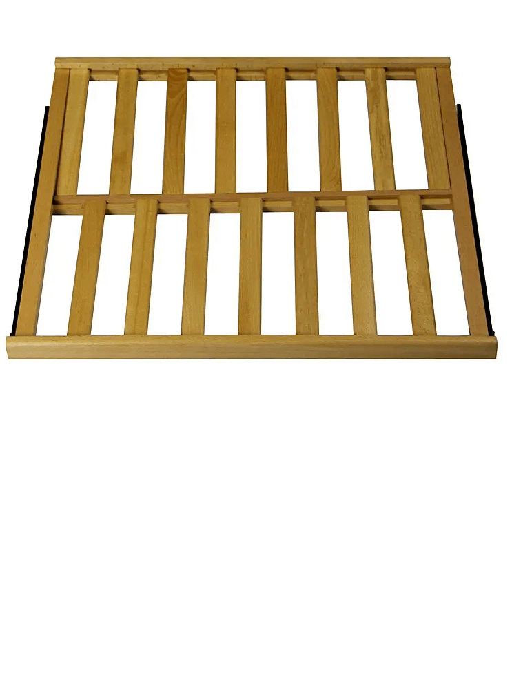 - Shelf Capacity: 9 sliding shelves hold 28 bottles, Bottom shelf holds 25 bottles