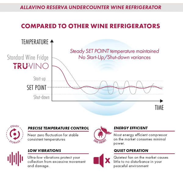 Allavino Reserva Series 50 Bottle Dual Zone Built-in Wine Cooler BDW5034D-2BSR - 1 - Year Warranty (Free) / 5 - Year Compressor (parts only) (Free) / Right Hand Hinge is backordered and will ship as soon as it is back in stock.