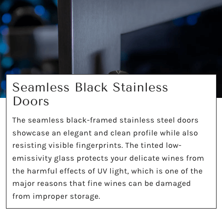 - Cabinet: Black Cabinet with Black Stainless Steel Framed Glass Door