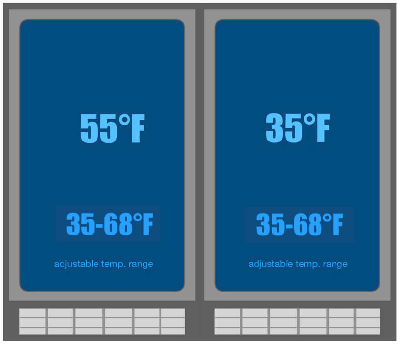 - Wine Side: 35°F to 68°F (2°C to 20°C)