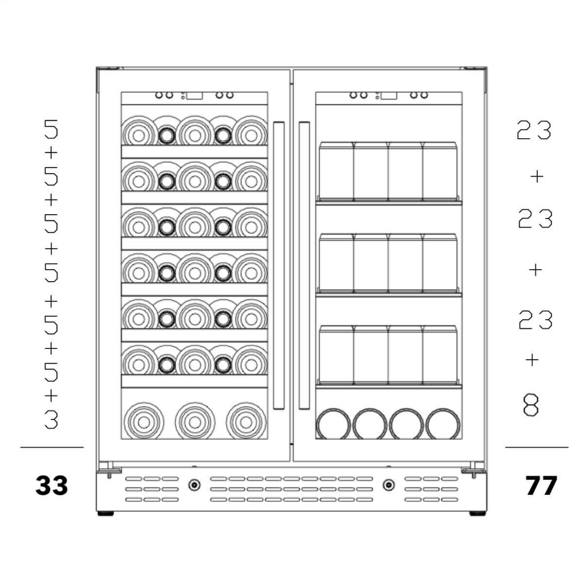 - Capacity: 33 Bottles 77 Cans