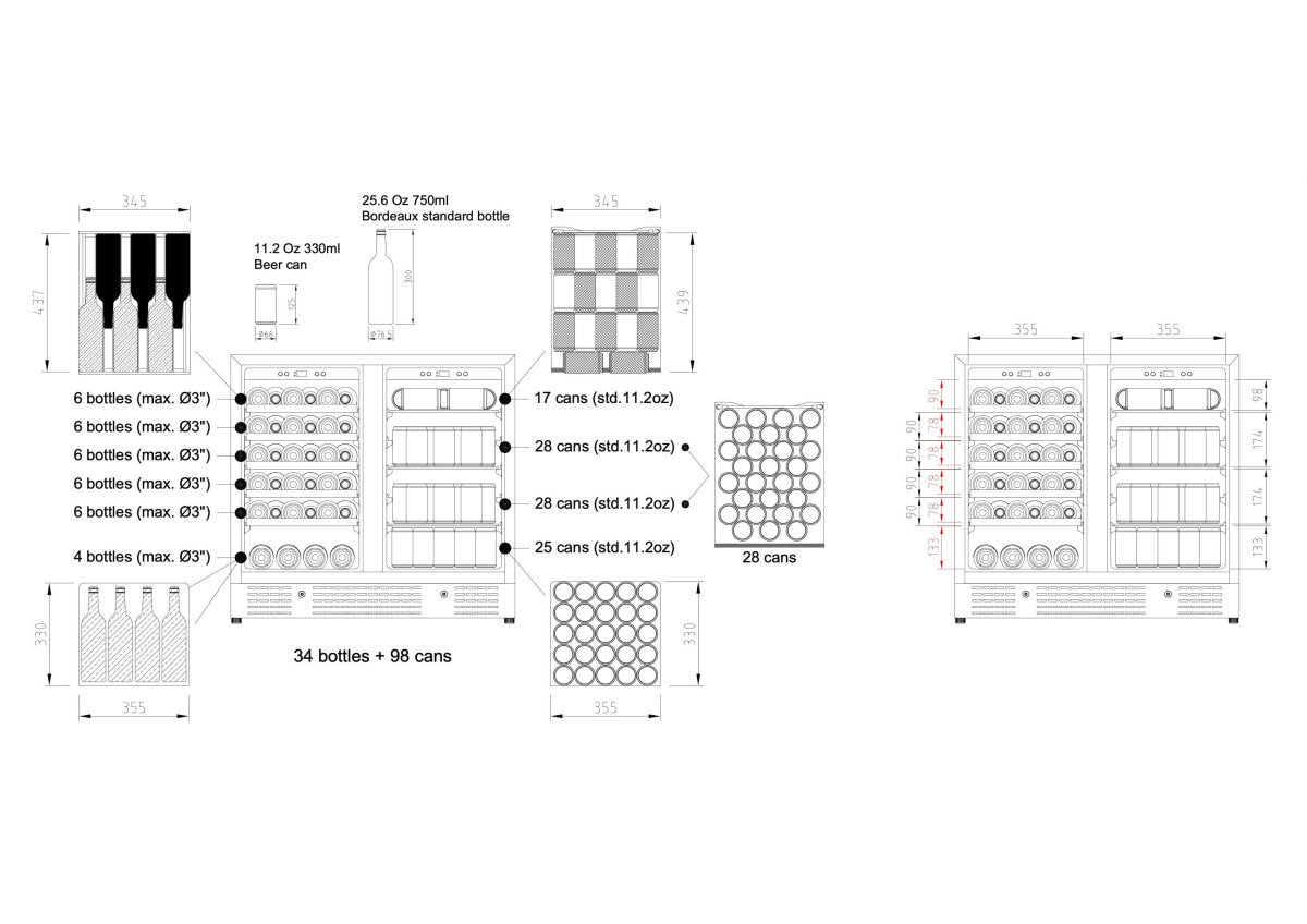 - Wine Side: 35-68 Fahrenheit (2-20°C)