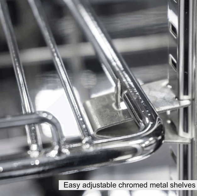 - Shelf Configuration: 2 Fully Adjustable Chromed Metal Shelves