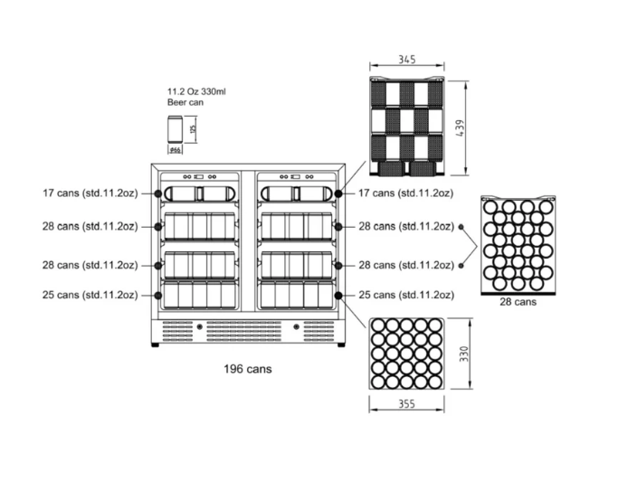 The KingsBottle KBU190B2 dual-zone beverage fridge elevates home entertaining with sophisticated cooling in a sleek 36" design. This versatile unit (35.5"W x 23.4"D x 33.5"H, 6.70 cu.ft) accommodates up to 196 cans across six glass shelves with independently controlled temperature zones, each adjustable from 35-68°F (2-20°C), allowing perfect storage for soft drinks, beers, and sparkling water simultaneously.