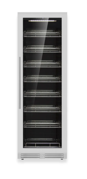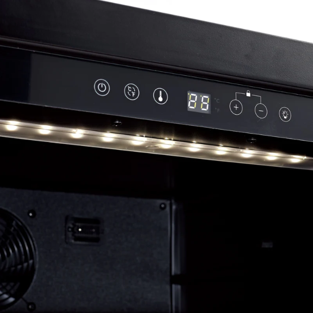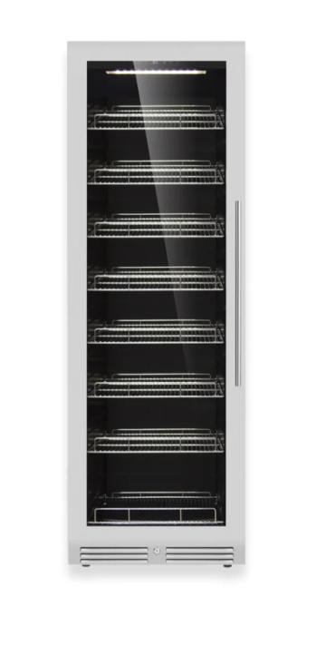 Built for versatility, this refrigerator features fully adjustable heavy-duty chrome shelving, each rated to support an impressive 26 kilograms. The intuitive electronic controls provide precise temperature management, while the front-venting system allows for flexible installation options. Complete your entertainment suite by pairing it with our matching KBU425DX wine refrigerator, capable of storing 159 bottles. The optional borderless black glass door creates a stunning contemporary aesthetic with its seamless design and clear interior visibility.
