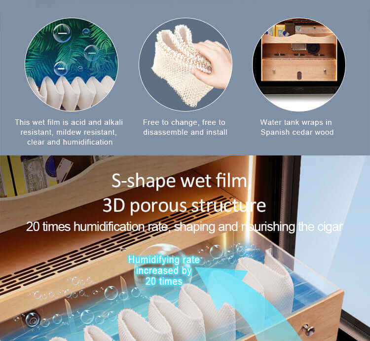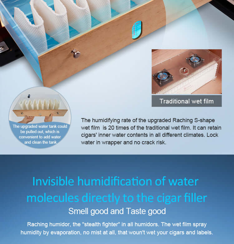 Unlike ultrasonic or infrared systems that commonly create problematic white powder residue and fogging effects, this advanced humidification technology maintains perfect moisture levels without wetting cigars or tobacco products, ensuring worry-free preservation of your valuable collection.